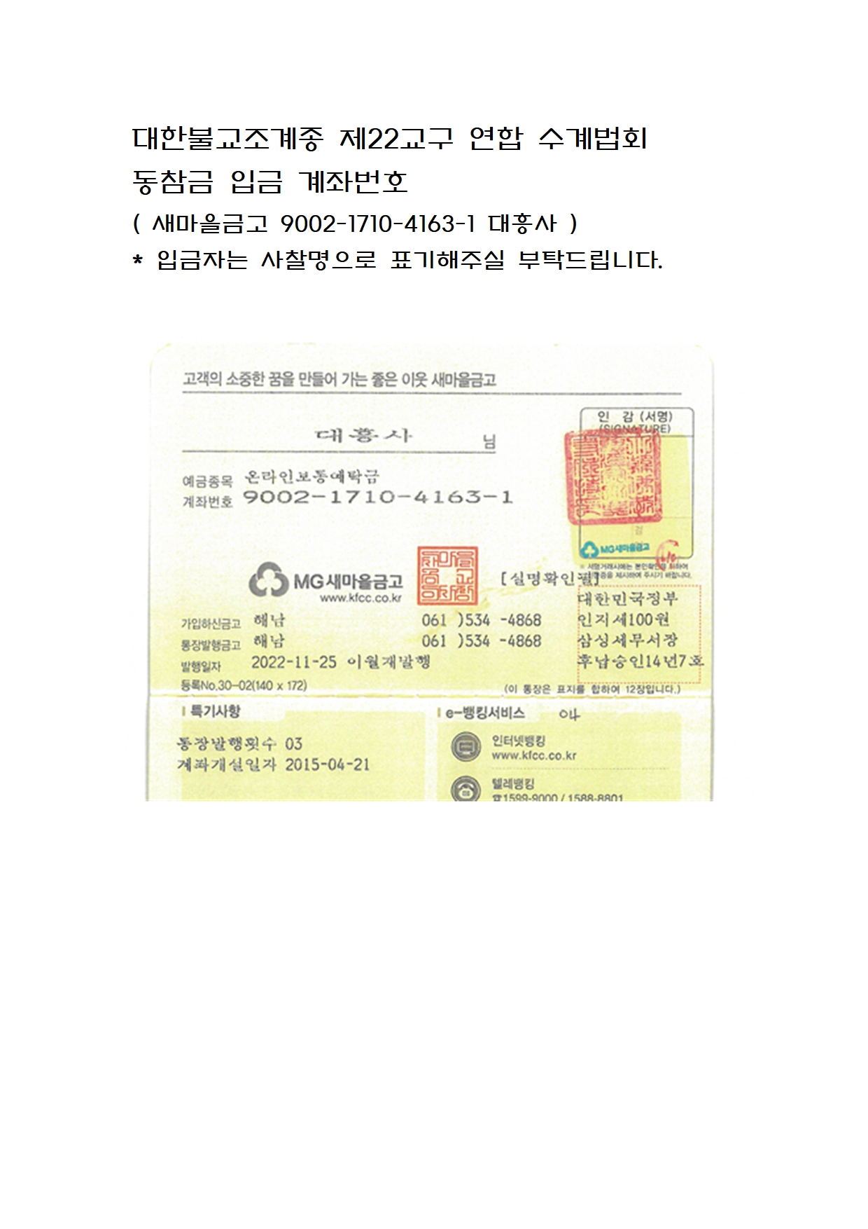 대한불교조계종 제22교구 연합수계법회 봉행 안내
